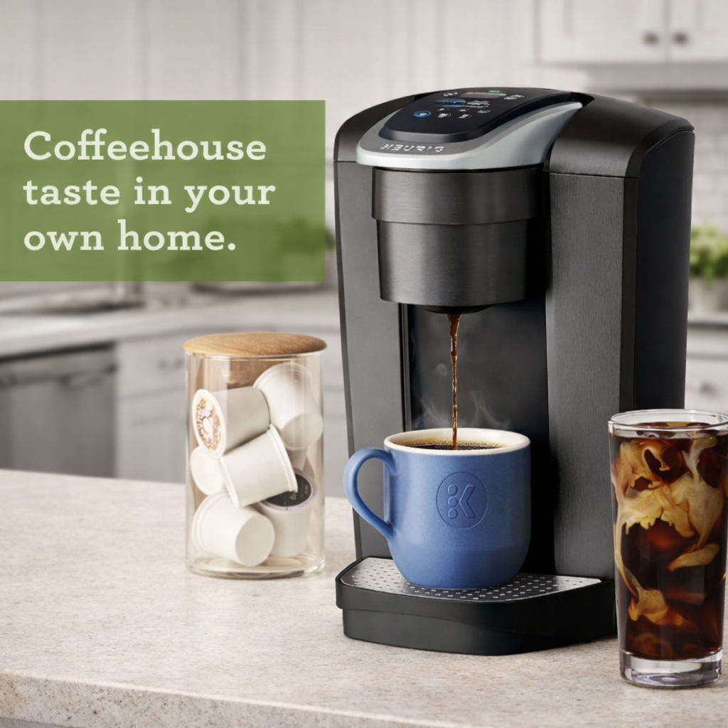 Enjoy barista-style coffee without leaving home. The Keurig K-Elite delivers bold, smooth flavor with customizable brew sizes and a strong brew option for a richer cup. Its sleek, modern design elevates any kitchen, while fast, quiet brewing ensures convenience every morning. Brew hot or iced coffee effortlessly and enjoy café-quality results anytime you want.
